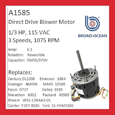 Buy A1585 1 3hp Furnace Blower Motor 115v 1075rpm 6 1amp Online In Indonesia B07vbj3hlf